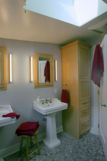 This home is located on Queen Anne hill in Seattle, Washington. It was very important to the owners that the remodel retain the overall scale and feel of the original 1920’s residence. To achieve this, we removed most of the existing roof and added two shed dormers on the upper floor. This allowed use of the former attic space as a master suite. By adding decorative coffered beams in the living room ceiling, we were able to support the additional building loads that are imposed by the new master suite. We cut the beams into the original plaster cove moldings for a seamless remodel that looks like part of the original construction. The remodeled home retains its quaint character from the street while capturing important usable space in the attic.